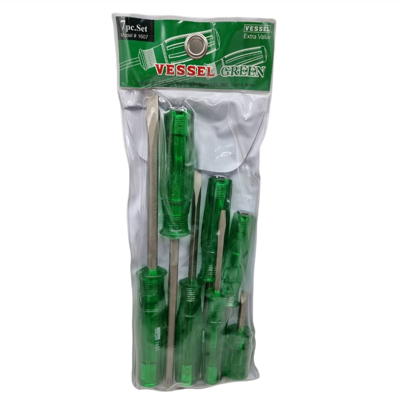 مجموعه 7 عدد پیچ گوشتی ضربه خور وسل شامل: 4 عدد دوسو در سایزهای: 8x150 . 6x105 . 5x75 . 8x40 میلیمتر میباشد 3 عدد چهارسو در سایزهای: 8x150 . 6x105 . 5x75 میلیمتر میباشد