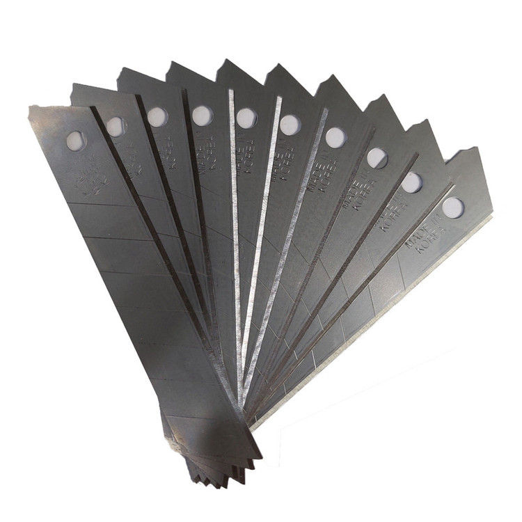 این محصول با کیفیت ساخت کشور کره جنوبی می باشد.دارای کیفیت و طول عمر زیاد به نسیت دیگر رقبای هم رده اصلی. جنس آن استیل ضد زنگ و دارای 7 خط برش جهت شکستن برای تیز شدن مجدد نوک تیغه. دارای ضخامت 0.5 میلیمتری و دارای بسته بندی 10 عددی قوطی پلاستیکی سفید رنگ میباشد.
